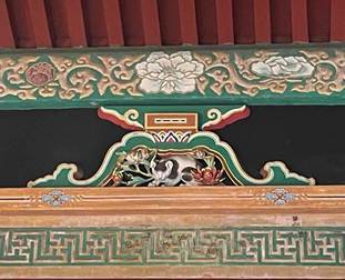 「見ざる・言わざる・聞かざる」で有名な三猿の彫刻された神厩舎です。この彫刻の由来は昔から猿が馬を守るという神話から作られた厩(うまや)だそうです。