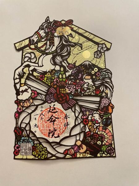 今年の干支、午の切り絵御朱印(新作)をいただいてきました。